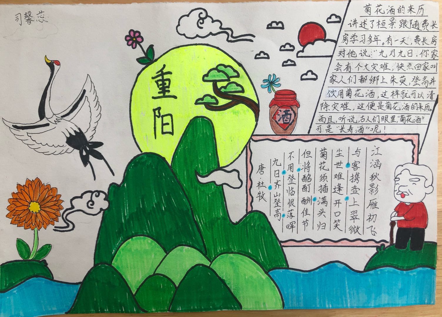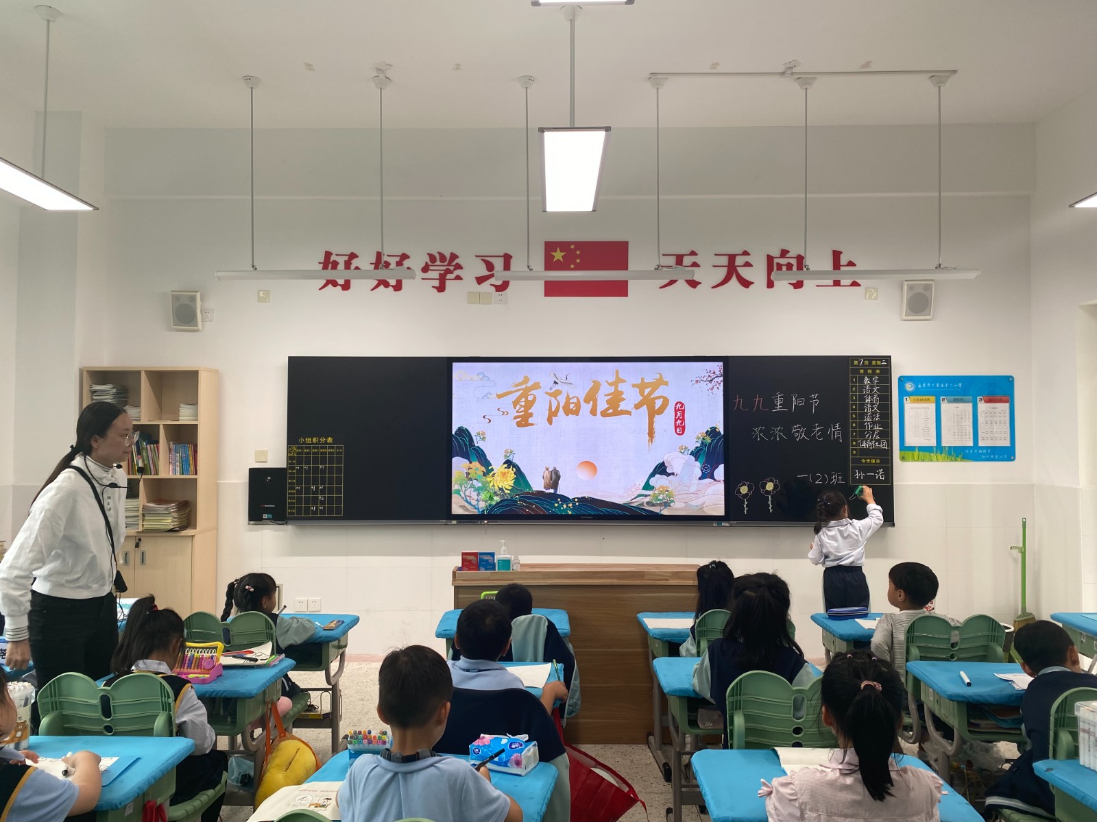 少先队员们借此机会,吟咏起了与重阳相关的诗歌,还用心写下了重阳主题的书法作品和手抄报,每个人都积极参与,大显身手,活动气氛热烈,高潮迭起。