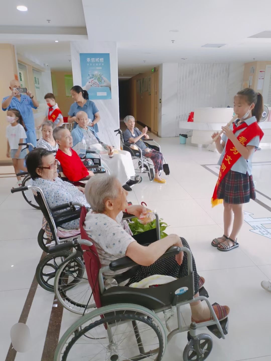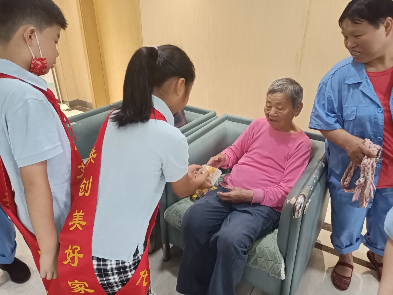 九九重阳,寓意“久久”,有祝愿老人长寿的含义,所以重阳节又称老人节。关爱老人,尊老敬老,功在当代,立在千秋。丁家庄第二小学少先队员代表们去敬老院为老人们表演节目,一首首动听的歌曲、一张张稚嫩的笑脸,都表达了学生对重阳这个值得感恩日子的理解。传承着孝敬老人的中华民族传统美德,倡导全社会树立尊老、敬老、爱老、助老的风气。