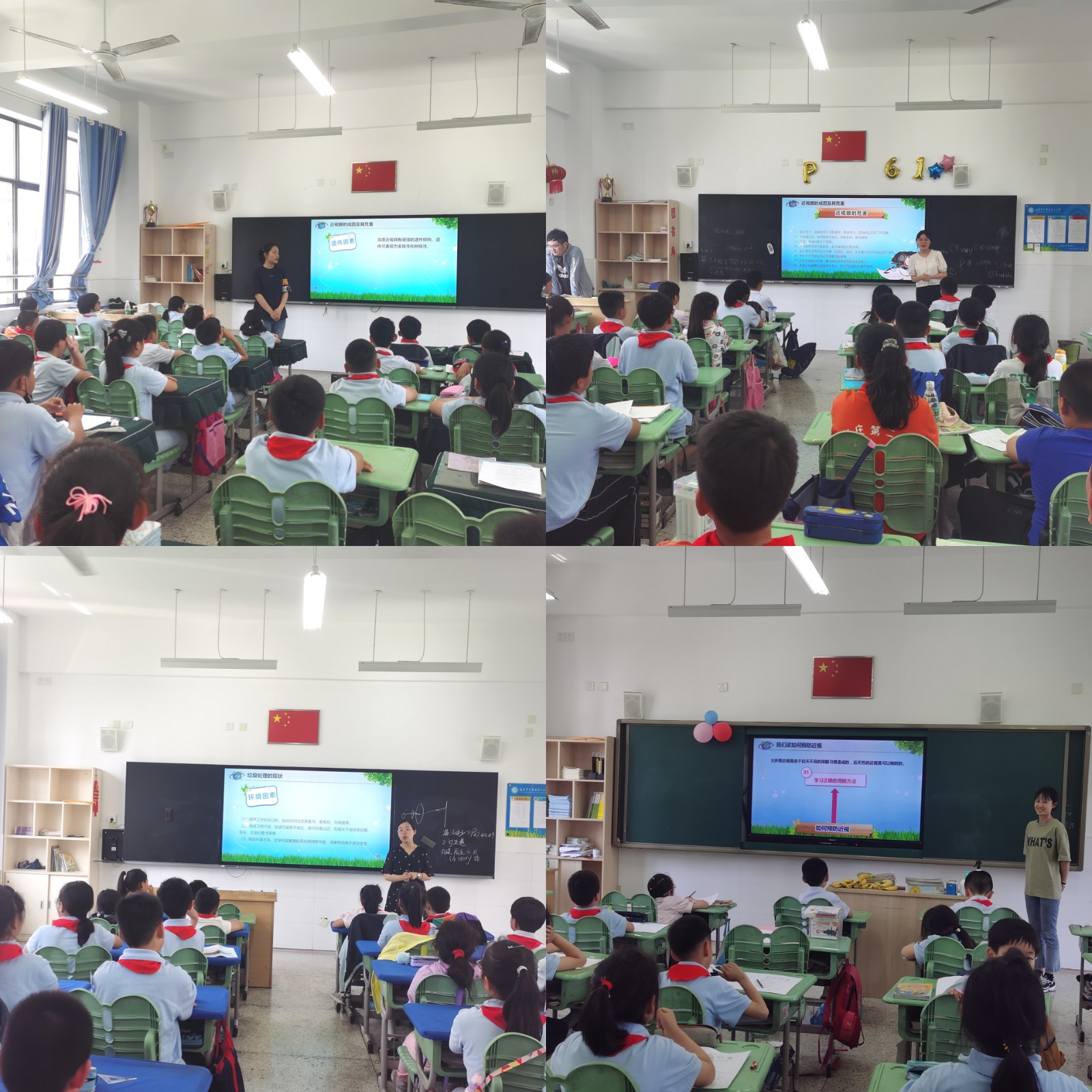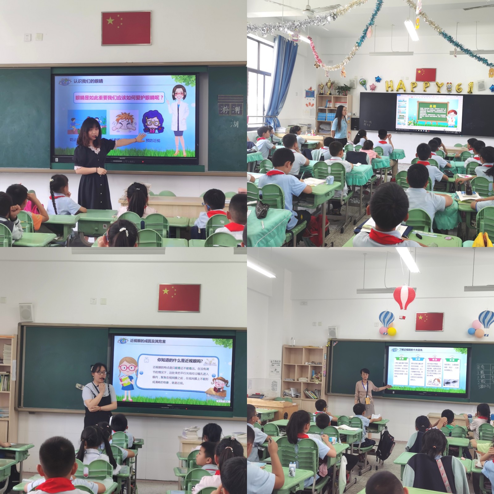 因为明亮的眼睛,我们可以看到山川河流、大海星辰、宇宙万物。眼睛是我们观察世界的、探索美好世界的窗口。而目前学生近视呈现高发、低龄化趋势,严重影响孩子们的身心健康,青少年近视问题已经成为我国面临的重要社会问题。全民行动,势在必行!本周的“全国爱眼日”宣传教育不仅体现在学校大屏的宣传上,也已在班会课上落实到位,各班班主任带领同学们学习“爱眼”相关知识:了解我们的眼睛、了解近视眼的成因及危害、了解近视眼的十大征兆以及如何预防近视,同学们也听的十分投入。