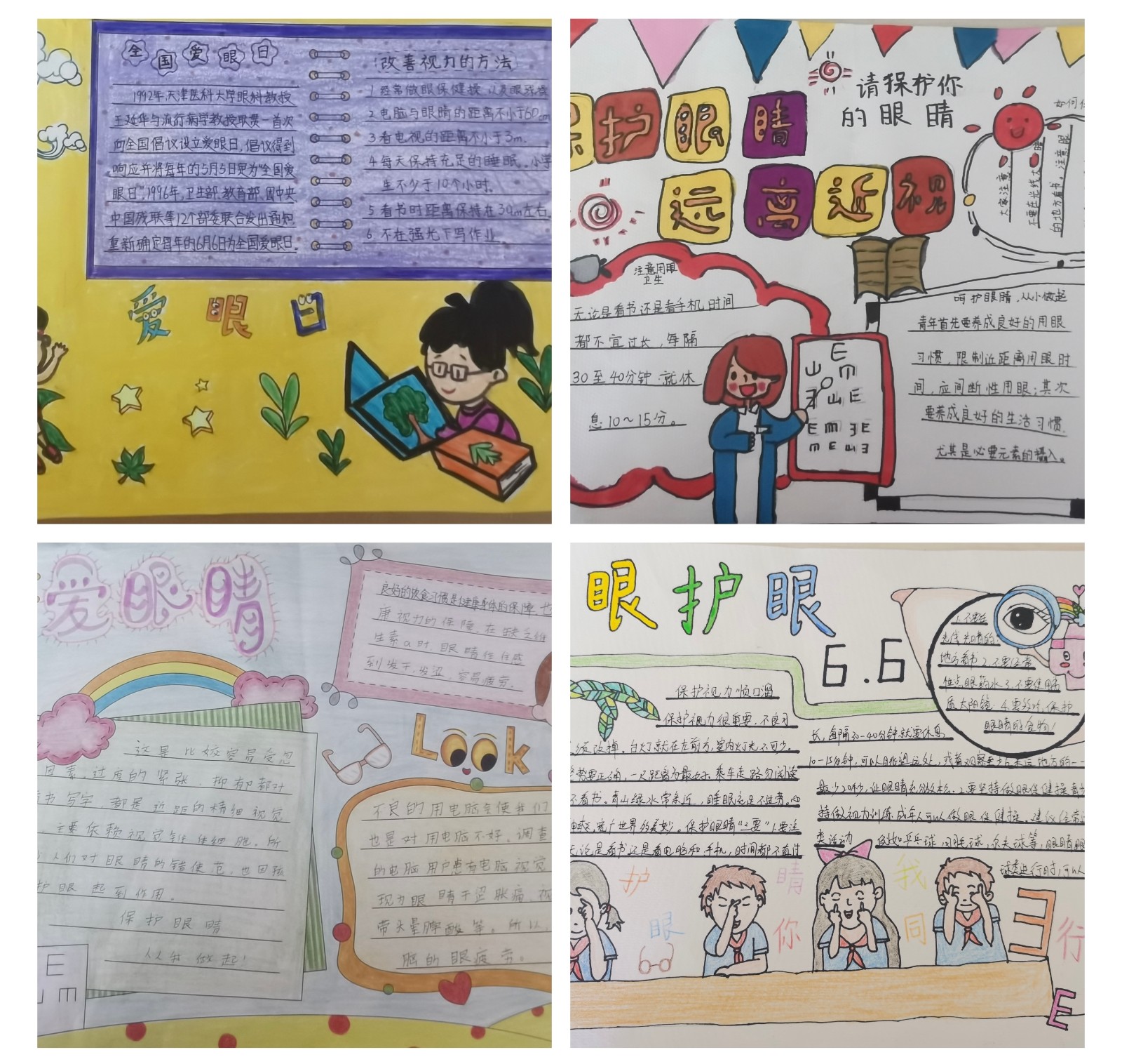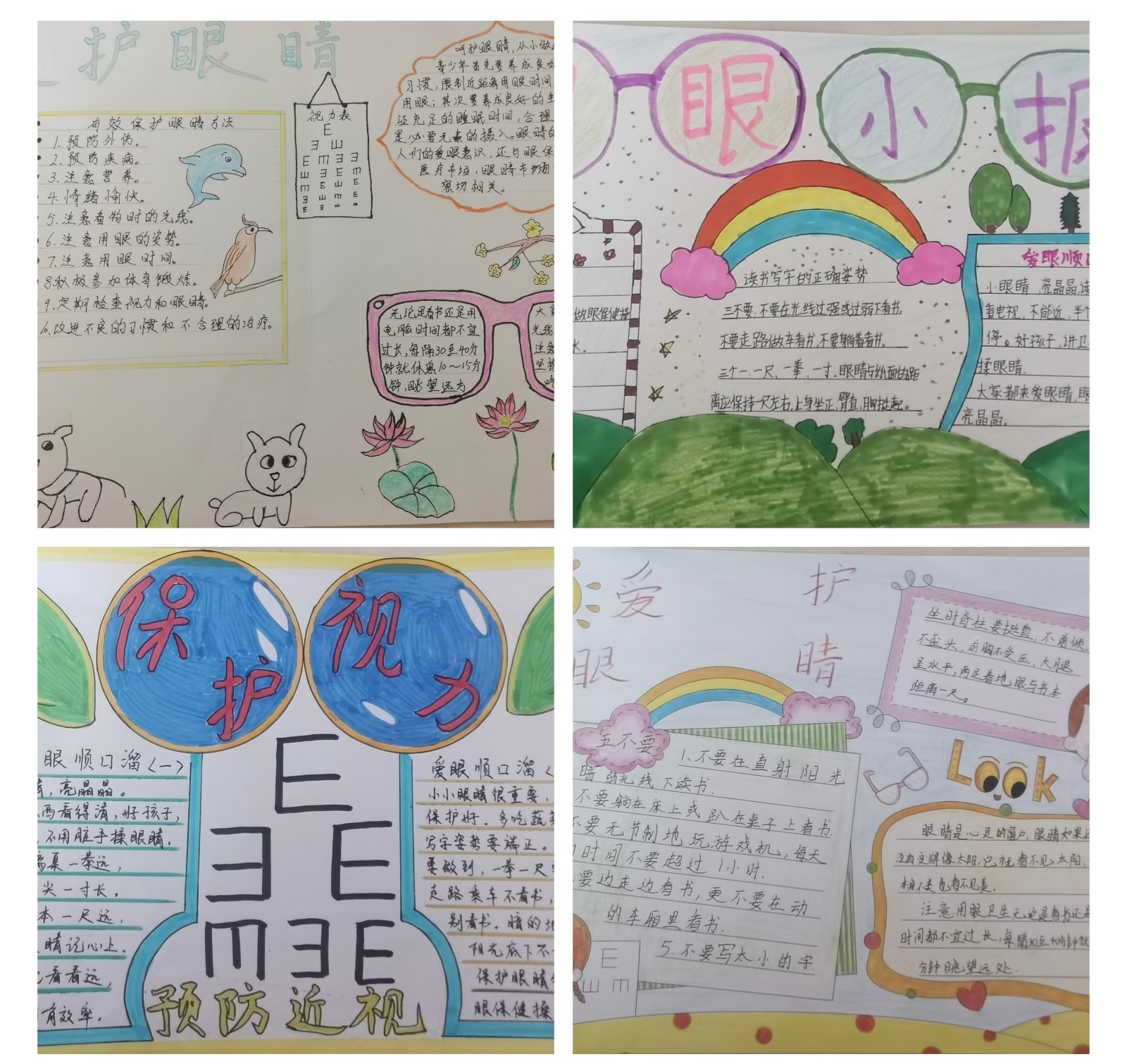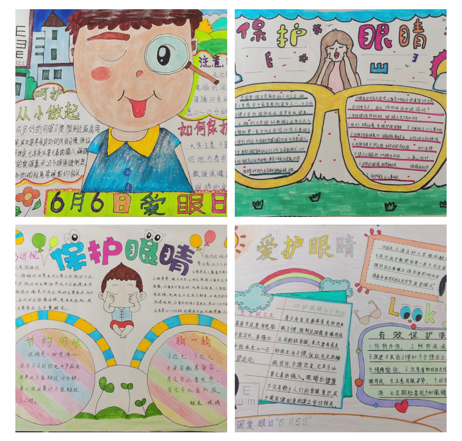 为了扩大宣传,学校还通过画手抄报的形式,让孩子们亲身参与到“爱眼”活动中,激发他们创作灵感和创作愿望。各班同学积极响应并纷纷行动起来。德育处也对此进行了评比,获奖名单如下: