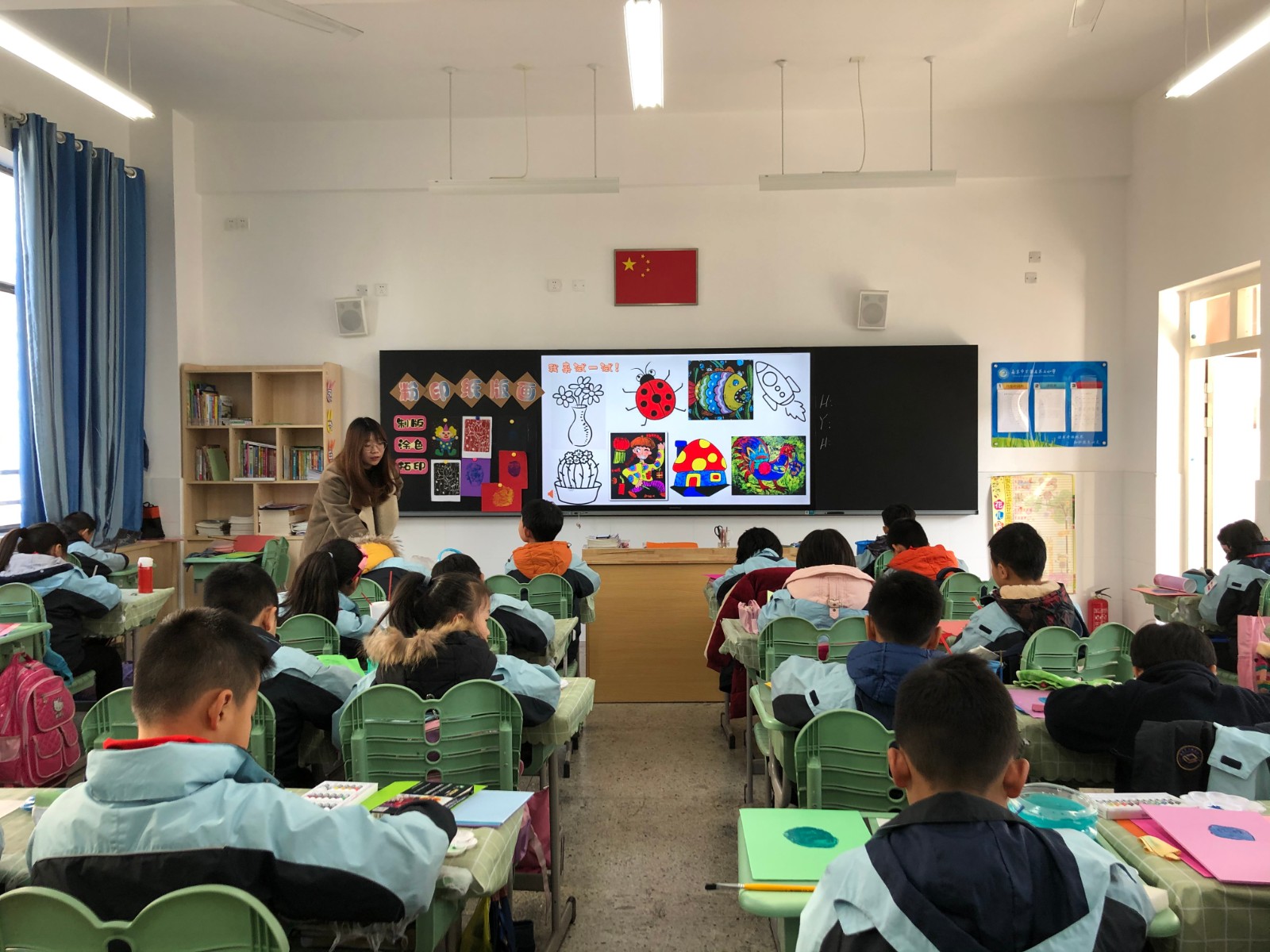 首先由葛紫云老师执教三年级美术《粉印纸版画》一课。葛老师通过出示孩子们的集体照并送大家每人一张笑脸导入本节课,在拟人般的语境中开门见山地示范粉印纸版画的操作过程,带给学生一个完整的认识,为后面的学习做一个实效的铺垫。之后游戏性的新授过程,呈现的鲜艳斑驳的视觉效果深受孩子的喜欢。整节课氛围十分融洽,孩子们创造出了许多优秀的纸版画作品,艺术之花尽在课堂绽放。