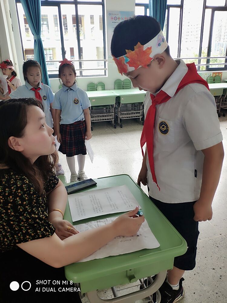 伴随铃声的响起,学生们手拿通关卡,每一关的测试进行的井然有序,或激动,或好奇,或紧张。考官们根据学生的具体表现给出相应的评级。新颖的形式,别致的内容,情境化的测试题目,让孩子们自信满满,在快乐中完成了闯关。