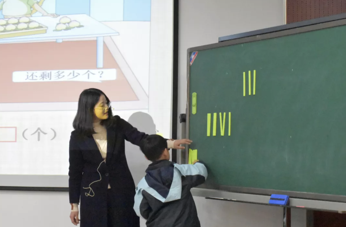 王璇老师执教了二年级的《有余数除法的认识》,教学中,对余数概念的理解、对有余数的除法含义的理解,王老师都是借助直观操作来进行的,由直观操作到符号表征,使学生从多方面、多角度理解所学的知识,并建立操作过程、语言表达和符号表征之间的关系,实现学生对数学概念的真正理解,并通过对比帮助学生理解有余数除法的含义。两节课让我们看到了教师在课堂中对于学生动手实践能力的培养,以小棒操作架起算法直观和算理抽象之间的桥梁,呈现了学生多样化的表征方式。