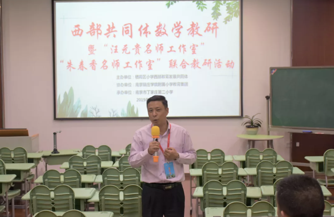 2019年5月16日下午,西部教育发展共同体数学教研暨“汪元贵名师工作室”“朱春香名师工作室”联合教研活动在南京市丁家庄第二小学举办。此次活动的主题是“动手实践助力高效课堂,直观想象提升核心素养”。参加本次活动的有晓院附小教育集团鲁照斌校长、晓院附小朱春香校长、迈小教育集团陈斌校长、丁家庄第二小学葛家金校长、迈小教育集团特级教师汪元贵、晓庄小学杨美主任、重庆市万州区的领导及老师们。本次活动分为两个环节,第一个环节是课例展示,第二个环节是专家点评。